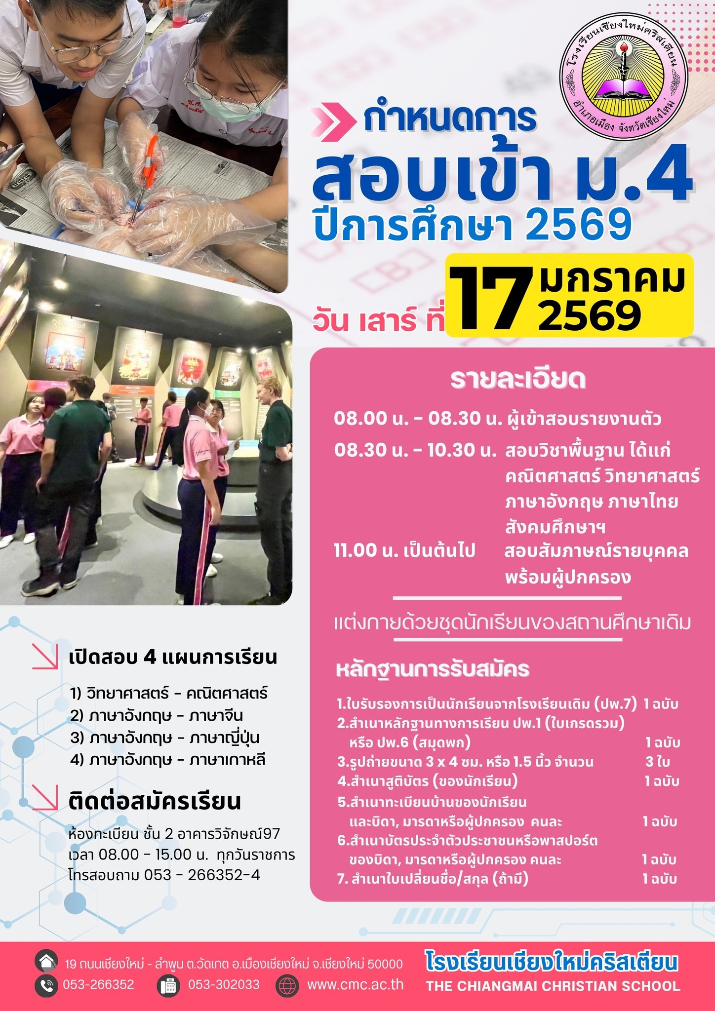 กำหนดการสอบเข้าชั้นมัธยมศึกษาปีที่ 4 ปีการศึกษา 2569
