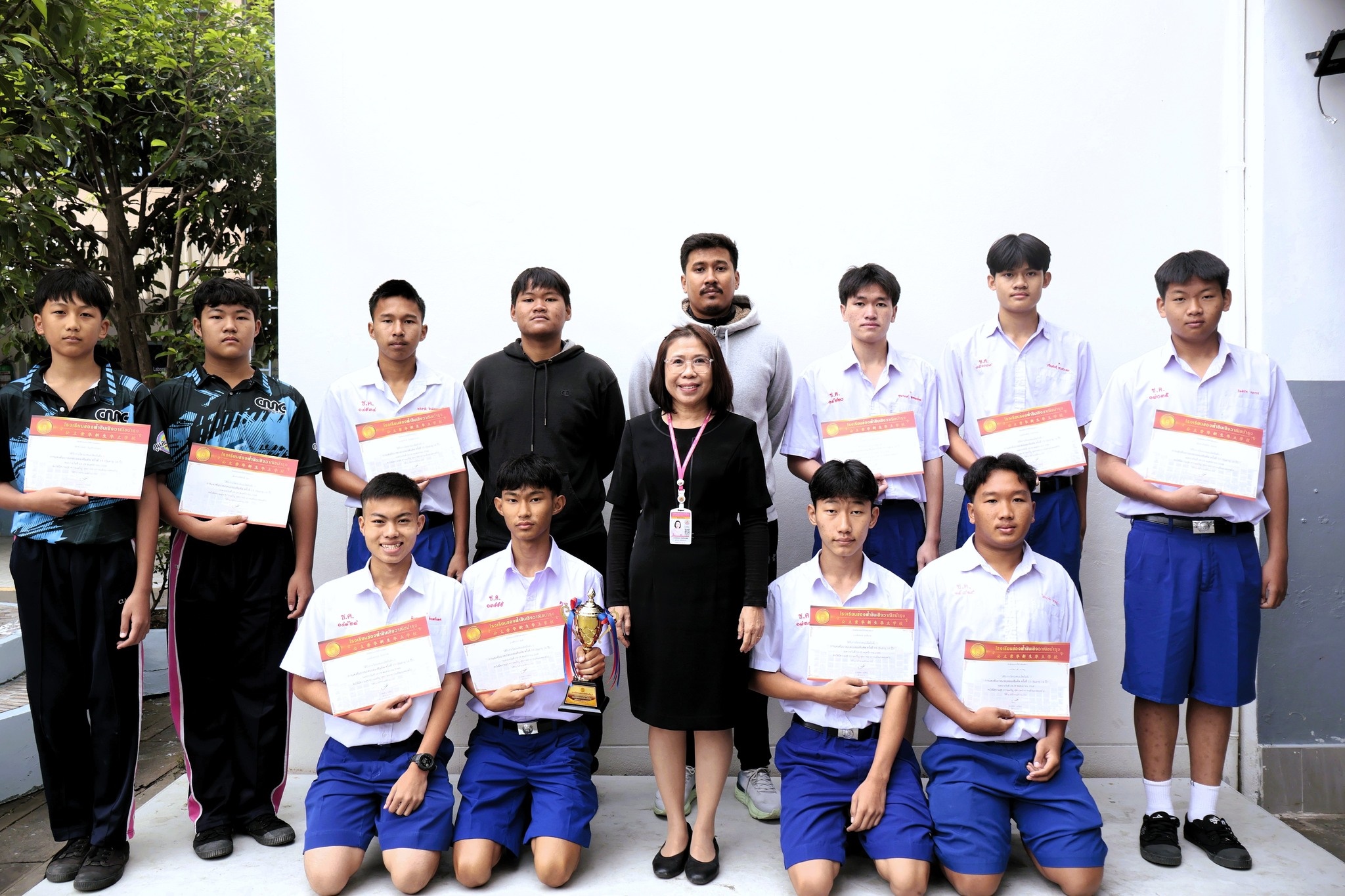 ศาสนาจารย์รำพรรณ สกุลปั้นทรัพย์ ผู้จัดการ-ผู้อำนวยการ แสดงความยินดีกับนักกีฬาบาสเกตบอล ได้รับรางวัลรองชนะเลิศอันดับ 3 โดยมีนักกีฬาดังต่อไปนี้ 1.นายอภิชาติ จินต์จุทาเวธน์ 2.นายต้นตระกูล จันทร์เทศ 3.นายธโนพันธ์ุ ทรงประทุม 4.นายคุณานนท์ ทิพยมณฑล 5.นายชัยพงษ์ ทะชีนาม 6.นายศิรากร ลุงคำ 7.นายธนธรณ์ คำแปง 8.นายไชยะวุฒิ เลาหมู่ 9.เด็ฏชายกิตติธัช ทองรส 10.เด็กชายจิติศักดิ์ สุยา 11.เด็กชายพชร หิญชีระนันทน์ โดยครูผู้ฝึกซ้อมและควบคุมการแข่งขัน นายพิทักษ์พงษ์ กันทะปง และนักศึกษาฦึกประสบการณ์ผู้ช่วยผู้สอน นายพงศ์ภัค แกนุ ในการแข่งขันบาสเกตบอลฉงซินคัพ ครั้งที่ 15 (รุ่นอายุ 16 ปี) ณ โรงเรียนช่องฟ้าซินเซิงวาณิชบำรุง