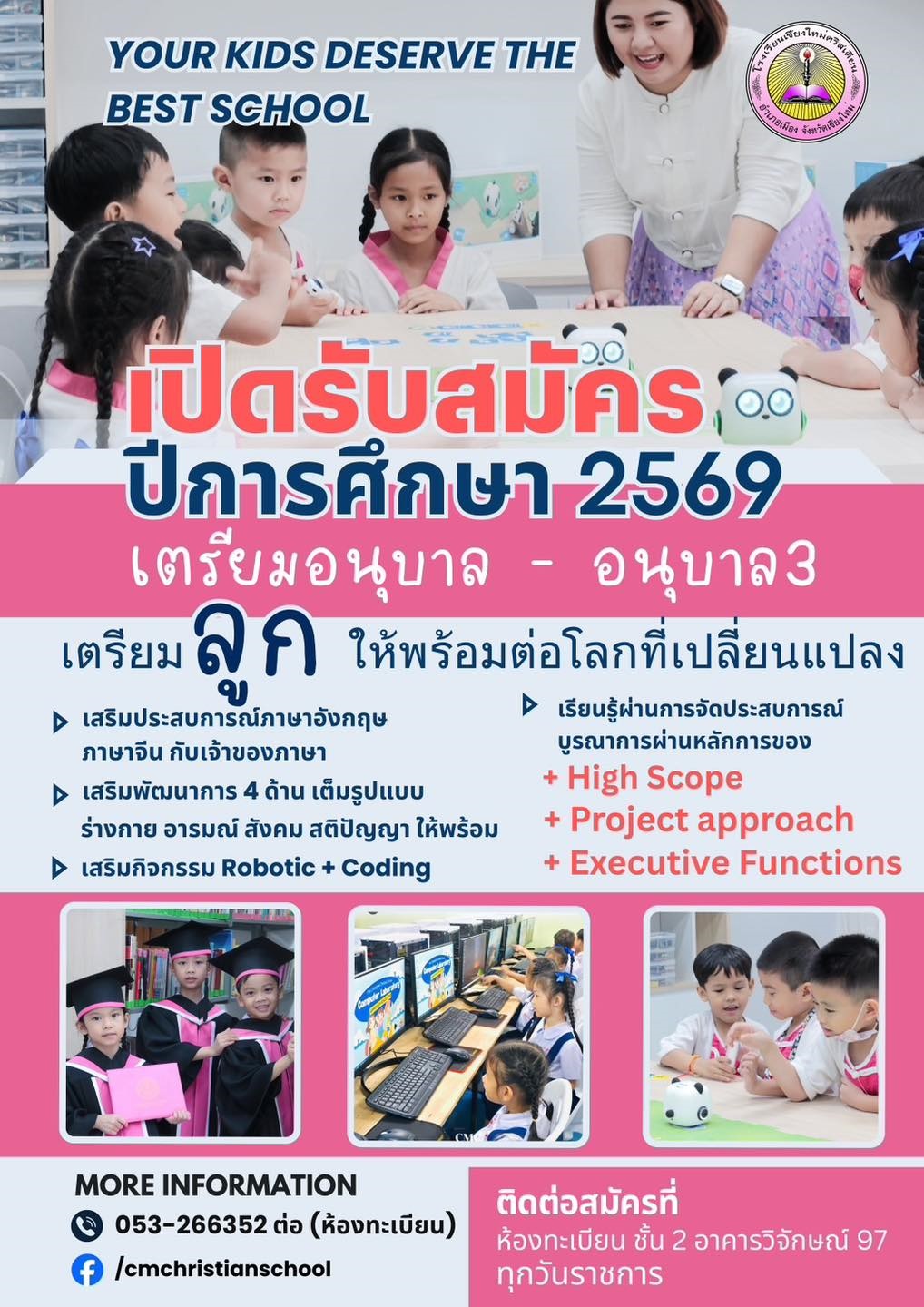 โรงเรียนเชียงใหม่คริสเตียน เปิดรับสมัครนักเรียนเตรียมอนุบาล-อนุบาล3 ปีการศึกษา 2569