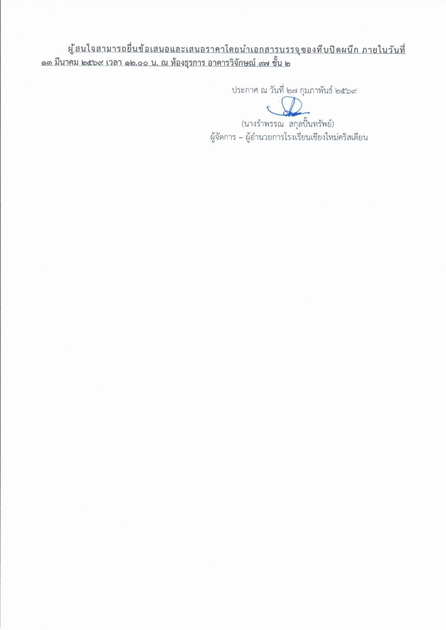 ผู้สนใจสามารถยื่นข้อเสนอและเสนอราคา ภายในวันที่ 13 มีนาคม 2569 เวลา12.00น. ณ ห้องธุรการ อาคารวิจักษณ์ 97 ชั้น 2