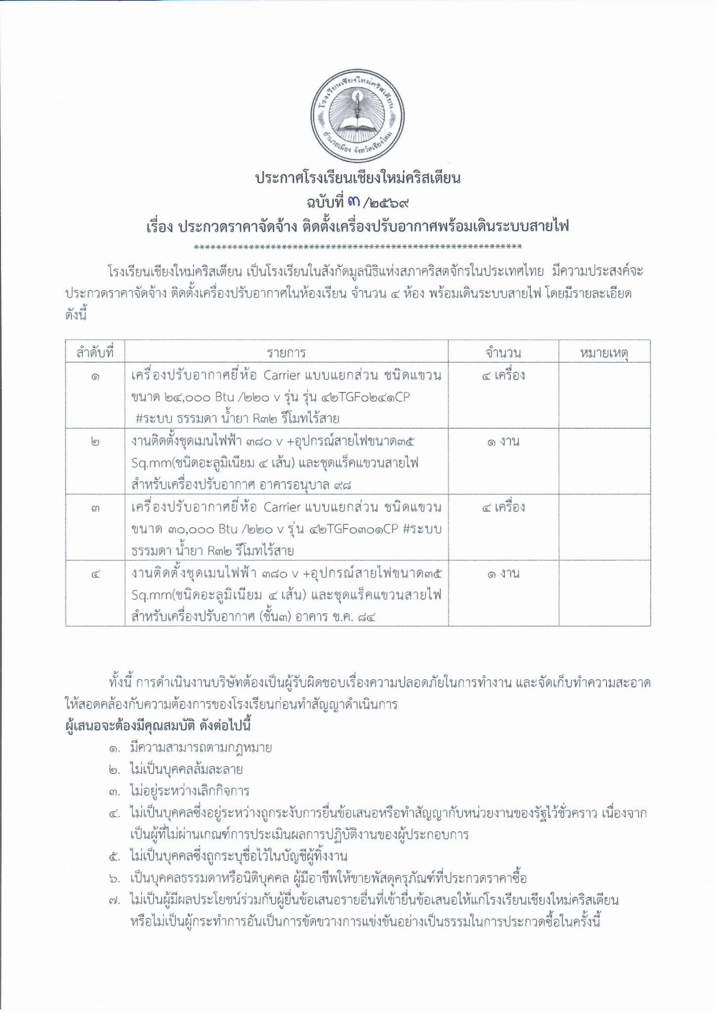 ประกาศ เรื่อง ประกวดราคาจัดจ้าง ติดตั้งเครื่องปรับอากาศพร้อมเดินระบบสายไฟ